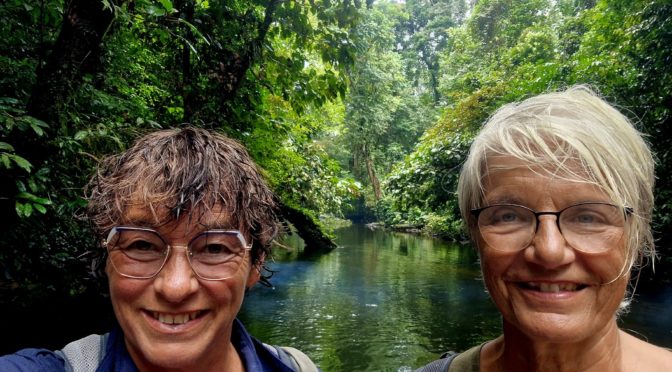 Neuf heures moins le quart nous nous dirigeons vers le point de rendez-vous. Aussitôt une des jeunes femmes de l’accueil se lève, vient vers moi et me dit : ”Isabelle, vous restez là le départ s’effectue de l’hôtel.” Bein, oui je ne vais pas réitérer mes bêtises d’hier. Marriott oblige, nous quittons l’hôtel directement dans la barque qui va nous conduire à l’entrée de Clear Cave. A bord, le pilote, Lorence, Aditi et Akshey, mes indiens d’hier ainsi que Marie Hélène et Jérôme respectivement Hollandais, nos nouveaux compagnons de la matinée. Clear Cave avec ses 280 km de connexion de grottes est considérée comme la plus grande du monde. Évidemment nous allons nous contenter de deux petits morceaux. Encore une fois pour moi et la première de ce voyage pour Martine, nous nous régalons à observer ces magnifiques sculptures que la nature nous offre. Ces empreintes du temps laissées par l’océan puis les rivières souterraines sont magistrales. Un petit 4km parcouru sous terre avec de nombreuses marches nous ont mis en appétit. Installées avec d’autres excursionnistes, un pique-nique est organisé au-dessus de la piscine naturelle formée par la rivière. Je dois avouer que Marriott a bien fait les choses et notre déjeuner est non seulement très bon mais totalement approprié pour les intestins de Martine qui va me regarder me baigner. Hé oui, pas d’eau fraîche pour elle. Nous passons un excellent moment et notre barque sera la dernière à quitter ce lieu paisible. Retour en début d’après-midi à notre habitation et là le déluge commence ! Étonnées par la vivacité de la pluie nous qui avons fait le choix cette année de la Malaisie à l’instar de l’Équateur en raison de la météo, nous réalisons juste que la ligne de l’équateur traverse Bornéo aussi et sur toute sa longueur ! Alors oui, le climat équatorial est justifié ! Une petite sieste pour moi bercée par le moelleux de mes oreillers puis un petit goûter. La pluie ne semble pas vouloir s’arrêter et va invalider la sortie nocturne dans la jungle. Zut alors, même la grimpette pour le coucher du soleil est compromise. Ce sera du coup, une fin de journée jeux et lecture qui nous conduira jusqu’au dîner. Et là pas de soucis nous avons les parapluies Marriott pour nous y accompagner !