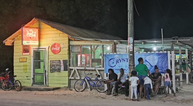 Super, le dimanche le bateau pour Belize ne part qu’à 11h au lieu de 7h. L’occasion de profiter d’un petit déjeuner sur la baie de l’Amatique et même de buller dans un hamac à observer le va et vient des pélicans. Nous voilà à bord de notre lancha rapide pour atteindre Punta Gordas au Belize en 35 minutes. Un tampon sur les passeports et nous sautons in extrémis dans le bus à destination de Hopkins, un village garifunda comme Livingston. Le chauffeur bien sympa avec son anglais dont on comprend un mot sur deux nous a laissé le temps de courir jusqu’au restaurant qui assure le change de monnaie. Super non seulement nous pouvons payer les billets mais surtout acheter, enfin moi, un tacos garni à un des vendeurs ambulants qui grimpe dans le bus. Au moins cela fait un point commun aux autres pays : la nourriture vient jusqu’à vous. En revanche la musique change, le reggae en anglais remplace les chansons d’amour en espagnol. Le bus nous dépose à un carrefour où la population présente ne semble pas comprendre notre demande d’informations pour rejoindre Hopkins, cela commence bien. Du coup nous prenons le taxi, contrariées car c’est sûr qu’il devait y avoir un autre moyen pour se rendre au village. Notre hôtel nous change de ces derniers jours. Une salle de bain privée mais pas de terrasse, juste à l’arrière un pauvre arbre tout seul où je vais pouvoir accrocher mon hamac. De toute façon nous filons directement à la plage pour tester cette eau à 28 degrés juste devant un petit restaurant bar local. C’est parfait. Rien ne vaut une bonne baignade dans une mer calme et claire. Point de poissons en vue aujourd’hui mais des locaux qui profitent de leur dimanche. Un petit tour du village et nous repérons LE bar bouffe des locaux pour ce soir. Une petite douche froide bien sûr, un petit verre, moi en hamac et Martine sur une pauvre chaise au dossier dégarni et il est temps de se mettre en route avant la fermeture. Nous gagnons le lieu repéré et assistons à un concours de dominos. L’ambiance est bien présente et chaque joueur tape son domino sur la table lorsqu’il le place comme s’il venait de gagner un jeu concours. C’est drôle. Après cette soirée sympa où je dois avouer que la communication s’est avérée brève car pour le moment notre anglais de compétition a du mal à intégrer l’accent du coin. Nous avons compris comment quitter le village demain matin mais ensuite nous improviserons car je dois avouer que je n’ai pas tout intégré sur les changements à entreprendre.
