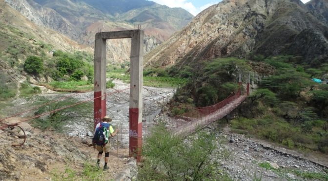 6h00 pétantes, William lance le départ, un au revoir chaleureux à tout le monde et commence la ballade du jour. Nous suivons la rive du Chicamocha pendant deux bonnes heures avant de tourner sur un autre rio. En chemin une petite escale chez des habitants totalement isolés mais qui reçoivent tout de même la visite du vendeur de vêtements ambulant que nous croisons en accédant à leur propriété. Et bien autant de kilomètres à pied avec ce volume de fringues sur le dos, moi je dis qu’il faut être motivé. Et on comprend pourquoi l’unique épicerie du coin est fermée à présent. Les repreneurs ne doivent pas ce bousculer. Les enfants de ce couple vivent tous à la ville et souhaiteraient que leur parents en face autant. Mais je comprends encore mieux qu’après 40 ans de vie dans la nature cela ne les séduit absolument pas.