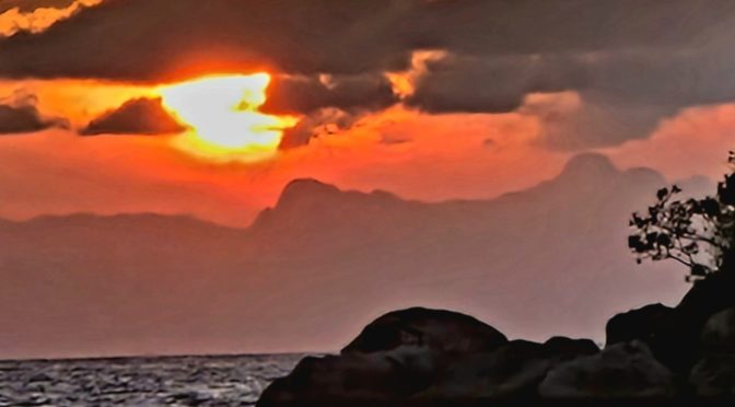 On ne change pas nos habitudes indiennes et on répond présentes au soleil levant ! La différence c’est que le yoga et les exercices de respiration ont laissé place au petit café et à la baignade. Ici, pas besoin de la chaleur du soleil pour rentrer dans l’eau, elle doit être autour des 29 degrés. Comme hier, les moines du temple voisin viennent bénir les donateurs qui, à tour de rôle remplissent leurs paniers de nourriture. Encore quelques brasses histoire de se mettre en appétit et direction notre petite table face à la mer. Le buffet regorge de mets délicieux, difficile de se restreindre enfin pour moi. Retour transats et comme le soleil se voile, nous profitons de cette accalmie pour partir en exploration vers l’ouest. Objectif secret beach en longeant la grande plage de Pattaya sur laquelle nous avons accosté. Ça va la frontière est toujours en place ! Le soleil est de retour, cette traversée nous semble interminable du coup nous faisons une escale sur la petite plage de Sanome avant de poursuivre. A présent nous sommes en pleine jungle, Martine se demande pourquoi elle a suivi mon idée ! Nous voilà enfin sur site ! Pas si secrète que cela, les autres sont arrivés en kayak. Une chance finalement car une allemande va me prêter ses palmes. Les fonds regorgent de bénitiers de toutes les couleurs, c’est chouette. Retour sur Pattaya pour un super goûter, une purée de mangues glacées à boire et je repère des tranches de pain dans l’assiettes d’un voisin ! Pain aillé tomates huile d’olive, hummm pas très Thaï mais qu’est-ce que c’est bon. Retour à notre plage sunrise que je trouve la plus sympa de koh Lipe en passant par les ruelles qui , à cette heure ci, sont plutôt calmes. Tous les transats en front de mer sont occupés pas grave, une petite douche et à nouveau les poufs et les transats se libèrent. Voilà une bonne journée où nous avons réussi à marcher 8km5 malgré la taille de l’île. Demain c’est bateau à la découverte du parc national marin de Tarutao?.