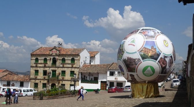 8h30 nous attendons les instructions pour la journée du groupe eco verde. 9h, ils nous annoncent qu’ils descendent à pied jusqu’à Sogamoso. Du coup nous avons une bonne heure devant nous pour partir au marché en quête d’un chapeau. Pour moi c’est fait pour Martine avec sa grosse tête rien ne va au grand désespoir du commerçant. Bon elle utilisera celui qu’elle a emporté.