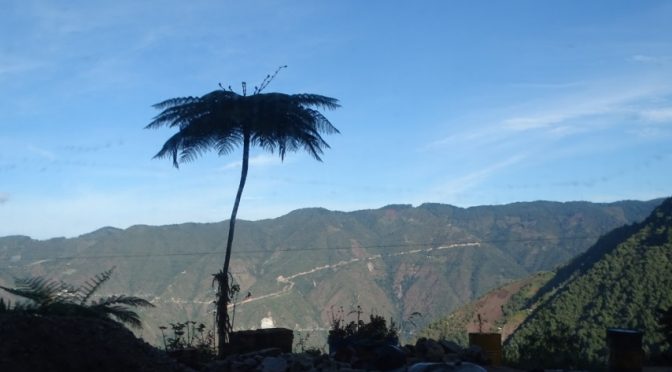 Nous voilà bien installés à l’hôtel du coin, dans la rue le défilé de mules semble intarissable. Allons voir ce que l’on peut trouver dans le coin. Première bonne surprise en plus des panelas, ils fabriquent ici des aguapanelas. Alors, c’est du sucre de canne bien sûr auquel est ajouté de l’aguardiente locale, rien plus ni moins que de la gnole de canne à sucre. C’est excellent ! Un peu plus loin le kiosque est désormais ouvert et ici on sert du café avec ce fameux aguardiente hum pas mal du tout. Et cela change de celui du commerce à faible teneur en alcool, là c’est plutôt de l’alcool au sucre. Mon sac est du coup un peu plus lourd avec ce breuvage servi en bouteille d’eau attention à ne pas se tromper, hihihi. En cas de coup de mou lors du prochain trek cela pourra aider ! Un bon dîner à l’hôtel et au lit. 4h du matin, un dernier coup de Klaxon et hop le bus démarre. Quelques dizaines de kilomètres plus loin, le copilote encaisseur d’argent descend pour combler un trou sur la chaussée enfin le petit chemin devrais-je dire. La nuit envahit toujours le paysage qui semble t’il commence à se verdir. 4h plus tard une escale dans un routier planté en sommet de montagne où le petit déjeuner est le bienvenu même si deux heures plus tôt nous avons profité d’un arrêt dans une ville coloniale pour prendre un café. À présent ce sont des centaines de fougères arborescentes qui se mêlent à la végétation de la montagne et qui rendent ce déplacement plutôt agréable. Retour à Bucaramanga, nous profitons de la présence de William à nos côtés pour arrêter le bus à proximité d’un point de vente de billets de bus. Voilà c’est fait : départ à 4h demain matin pour Santa Marta. Une dernière petite bière avec notre ami et nous prenons la direction de la maison de Diana où sa fille nous attend puisque Diana est avec la familia eco verde en randonnée. Je suis déçue de ne pas avoir réussi à rentrer hier soir pour les accompagner mais en même temps la séance repos et lavage de vêtements était plus que nécessaire. Nous nous verrons ce soir avec Diana.