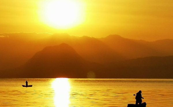 Il y a quelques jours je vous écrivais que nous n’étions pas concernées par les avis des guides qui décrivent San Pedro comme le village festif du lac. Et bien cette nuit nos oreilles ont confirmé cette classification. Jusqu’à deux heures du matin la techno a enveloppé la sérénité du lac. 6h15, Martine bien décidé à vérifier si les couleurs du lacs sont plus éclatantes le matin part pour la plage. 30 minutes plus tard je la rejoins à point nommé pour le lever du soleil. Vers 8h je m’amuse en pensant que les locaux prennent leur revanche avec un haut parleur qui lâche à tout va des messages religieux. Petit déjeuner et départ pour Panajachel, le village le plus touristique du lac. Pour ce faire nous prenons la lancha la plus lente qui stoppe à chaque village. L’occasion de parfaire notre connaissance des pourtours d’Atitlan. Panajachel possède une promenade le long du lac dont chaque pavé est dédié à un étalage de vêtements style maya en tout genre. Les vendeurs ambulants arpentent la promenade et les sollicitations sont permanente d’autant que le touriste se fait rare. Nous nous installons dans un petit hôtel sans prétention disposant d’un beau jardin fleuri et doté d’une petite piscine. Un déjeuner dans un bouiboui local et là se finit pour moi toute velléité de baignade car, suite à un oubli, je me fais voler mon sac contenant mon maillot de bain. Je me demande bien qui va pouvoir rentrer dedans. En route pour la réserve naturelle d’Atitlan ; mon genou refuse toujours les descentes d’escaliers mais accepte les montées. Cela tombe à pic, je découvre que la réserve dispose d’un circuit de tyroliennes. Martine va arpenter les différents sentiers pendant que je vais jouer à traverser les montagnes. Nous grimpons ensemble jusqu’au sommet en empruntant cinq ou six ponts suspendus. Puis je l’abandonne pour rester en compagnie d’un jeune couple de Xela en week-end et nos deux professionnels de la tyrolienne. C’est parti pour une heure et demie de descentes alternées de grimpettes. 7 tyroliennes au total dont deux avoisinant le kilomètre. Super génial sauf que ma petite guatémaltèque va rester bloquée en plein milieu d’une des descentes car le vent s’est avéré plus fort que son poids. Pour une fois je ne regrette pas mes kilos. Sergio est allé à sa rescousse mais ensuite elle a trouvé le moyen de déplacer la main qui doit maintenir la poulie et son gant s’est pris dedans. Résultat le temps de la secourir à nouveau et pour Sergio de remonter afin d’assurer la sécurité de son compagnon, notre petite ballade a duré près de deux heures et demie. Je retrouve Martine pour la visite des papillons. Je suis tombée en admiration devant la chrysalide du Monarca. On croirait un bijou d’émeraude. Retour à l’hôtel avec une petite bière apéritive avant d’aller déguster d’excellentes escalopes de poulet farcies au chèvre et servies avec une sauce aux prunes pour moi et farcies à la ricotta épinards frais avec une sauce au tamarin pour Martine. Les deux installées sur une purée de pommes de terre et accompagnées d’aubergines et carottes cuites à la plancha. Excellent et bien sûr nous étions obligées de prendre le vin qui va bien. Demain nous quittons le lac pour de nouveaux horizons.