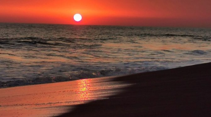 Pas de bus à 8h alors nous commençons le mode relax avant l’heure. Bavardage avec Orlando un des petit gars de l’hôtel puis nous faisons office de traductrices pour notre compagne de la veille, une jeune turque, qui ne parle pas l’espagnol. 10h, il est temps de se mettre en route pour le terminal de bus. 10h10, la camionata nous embarque pour Escuintla, là pas le temps de sortir que déjà nos valises sont débarquées et chargées dans un van. Le temps de nous transférer nous même et hop direction Puerto San José, de là l’opération se réitère pour Iztapa et rebelote pour Monterrico. Depuis Antigua nous n’avons parcouru que 116 km, tout s’est enchaîné très vite mais nous n’arrivons que 4h30 plus tard. Entre les ralentisseurs, les ramassages de passagers dans les différents village où et au bord des routes les véhicules n’ont pas beaucoup d’occasions d’accélérer. Parfois des dames grimpent juste pour gravir une côte. Vous avez aussi les vendeurs en tout genre qui partagent un bout de trajet pour promouvoir un complément alimentaire qui vous passera la fatigue, les maux de tête et permettra de meilleurs résultats scolaires à vos enfants , un nouveau biscuit meilleur et plus sain que la marque connue qui vaut cher, un chocolat en papillote ou des nouveaux bonbons qui vous garantissent une meilleure haleine . Ah cela se rajoutent les ventes de mangues déjà préparée, les poulets frits, les pâtisseries, les tacos, des sodas et j’en passe. En bref, on mange tout en admirant les paysages où l’on suit les messages publicitaires en bref on ne s’ennuie jamais dans ces bus locaux et cela tombe bien car les styles de conduite ne permettent pas de s’endormir et la proximité favorise les échanges. Nous voilà à destination nous n’avons pas encore atteint notre hôtel que déjà je fais une halte au magasin de maillot de bain. Pas simple les jolis sont tous trop petit ce sera donc un bleu flashy qui fera l’affaire. Je repars fière, le maillot sur moi car quand même pour y rentrer j’ai eu besoin de l’aide de Martine. Ma valise jetée dans la chambre je plonge dans la piscine avant d’aller savourer le bain remous du Pacifique. C’est que nous venons de prendre 10 degrés depuis Antigua. Un bon 37 tout à fait supportable une fois mouillées. Un bon ceviche sur la plage de sable noir ponctuée de baignade, une ballade sur la plage et dans le village et terrasse de l’hôtel pour admirer le coucher du soleil. A priori nous ne sommes que 5 à occuper les lieux. Un jeune couple guatémaltèque et un français avec qui nous avons passé toute la soirée. Et le monde est petit car Ronan a sa maman qui vit dans le même village que nous. A priori le blog risque de prendre des vacances car hormis une petite ballade en barque dans la mangrove, les baignades, la bière et les cocktails j’ai l’impression qu’il n’y a pas grand-chose à faire dans le quartier. Si, peut être aller danser demain soir car on vient de regagner la chambre, il est minuit et la musique bien d’ici s’échappe fortement d’un lieu de la ruelle qui conduit à la plage. Bar, restaurant ? A voir !