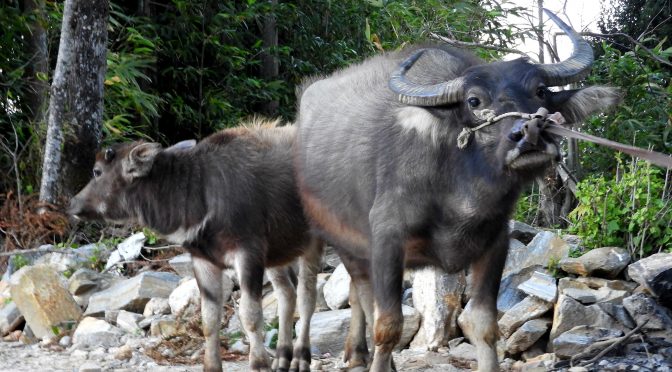 Ce matin, c’est moi qui joue les boulets dans notre dortoir, j’ouvre un œil, 6h44, parfait je veux éteindre le réveil mais loupé il se déclenche au même moment. Résultat mon coq se met à chanter sans que je puisse l’arrêter pendant de longues minutes annonçant du coup à tout le dortoir que nous partons. Hop! Ça commence bien : notre gentil réceptionniste d’hier soir attend derrière la porte pour porter mon sac en haut de l’escalier. Il nous a réservé un taxi pour nous rendre à une station de métro, il est parfait. On repassera par là dans 4 jours avec plaisir. Nous voilà à la gare, vue l’heure on a le temps de prendre un petit déjeuner à la chinoise sur les minis tables comme au Vietnam. On passe le contrôle des sacs et la barrière de sécurité et hop dans le bus. Gentiment une personne se déplace pour que l’on puisse être ensemble mais c’était sans compter l’intervention d’un chef de bus. Houlala, hors de question de s’installer ailleurs que sur sa place numérotée. On n’avait pas vu… Et voilà le 36 pour moi c’est devant et le 35 pour Martine c’est tout à l’arrière. Bon à dans 7 heures ! Une mini pause 3h plus tard permet de constater qu’on a changé de Chine. Les toilettes à présent c’est sur une rigole, les unes derrières les autres et sans porte. En plus il faut repérer le signe chinois pour choisir la rigole femme. On repart les paysages changent et verdissent à vue d’œil. La chaleur aussi évolue c’est un bon 25 degrés à présent. Les chinois commencent à être malades avec la série de virages, je voie le stock de sacs à vomi qui se réduit comme peau de chagrin à côté de moi. Pouah j’ai du mal ! Que de changements. Nous voilà à destination à Xinjie, une autre française Anaïs fait également partie du voyage. Comme nous nous rendons à Pugao Laozhai le village des rizières et des guesthouses nous allons partager notre mini bus. La chinoise qui nous y conduit va faire plusieurs haltes, histoire de remplir tous les sièges. Résultat une bonne heure de plus pour parcourir les 25 derniers kilomètres. Et voilà il fait tout noir, elle nous abandonne au bord d’une petite route, nous montre un chemin et nous dit, il faut descendre. Bon on y va, le chemin se réduit sur un passage où s’alternent bouses de buffles et marches. On commence à avoir un doute et par chance, trois jeunes dont un français se rendent à la même auberge que nous. Anaïs, elle, va continuer seule. J’espère qu’elle aura trouver car pour accéder à la nôtre ce fut un vrai labyrinthe et sans eux je me demande comment on s’en serait sorties. Jacky, le chinois propriétaire, nous reçoit chaleureusement et commence par nous surclasser en chambre avec salle de bains. Ça c’est chouette. Et bien à table, ici on ne choisit pas mais c’est encore une nouvelle cuisine et c’est excellent. Une visite à la terrasse où nous irons voir le lever du soleil demain matin et au lit. Voilà les trois prochains jours vont consister à se balader dans les rizières et à profiter du soleil. Le seul hic c’est qu’il n’y a pas de médecin au village alors si cela ne s’améliore pas je devrais retourner à Xinjie pour mon dos. Belle journée à vous Pour nous c’est le printemps qui arrive et c’est chouette, Martine revit !