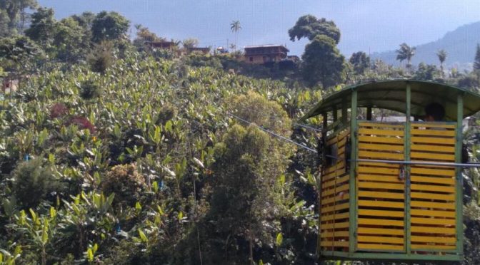 5h du matin, tout le monde sur le pont ! Hé oui si on veut dire au revoir à Margarita, c’est maintenant. Bon ensuite je passe en mode café avant d’attaquer le rangement de mon sac à dos. C’est curieux mais il est comme mon pantalon il semble rétréci. Une bonne heure va être nécessaire avant de tout rentrer à l’intérieur ! À présent ce sont les chaussures qui paraissent trop petites, les pieds se sont formatés aux tongs. 8h15, on claque la porte de l’appartement pour nous diriger vers le métro. Je suis, je l’avoue en mode bougon : mon appareil photo est en mode erreur et a détruit toute une série de photos dont la superbe tour Eiffel reproduite à côté de l’immeuble de Margarita pour désigner un ensemble de bâtiments chics qui s’appelle Paris. De plus, je viens de passer à la piña colada dans ma cigarette électronique et ce n’est pas bon. Et pour finir à force de traîner pour mon sac, je pense qu’on a loupé le bus pour Jardin. 9h on est déjà à la centrale de bus Sud. Forcément, chargées comme nous sommes, nous avons pris un taxi pour le métro et un autre pour la station de bus ça va plus vite que notre marche d’hier. (Le terminal de bus est en face de l’aéroport). Le premier guichet annonce le prochain bus pour 13H, toujours grognon je passe voir une autre compagnie et départ dans 20 minutes. Super ! le temps d’avaler une empanadas et en route. 4H plus tard, et moins de cent kilomètres parcourus, c’est le rythme montagne, nous parvenons à destination. Loin de nos villages du Chocoun peu en mode poubelle, ici on sent que le commerce du café et du tourisme profite à tout le monde. En moins de dix minutes nos sacs se reposent dans un hôtel et nous, nous découvrons les spécialités locales. Un petit plan du coin en poche fourni par Diana, la patronne de notre hôtel du même nom, nous commençons la découverte du village. Hop direction le vieux téléphérique pour traverser la rivière et commencer une petite ballade vers Charco Corazon. On ne sait pas ce que c’est mais on y va. Au final nous allons déambuler près de 4H et découvrir pleins de petites cascades et surtout un lieu magique avec des oiseaux magnifiques. (Sans commentaires parce que Les photos avec mon portable pas qualifié pour et sans zoom c’est pas terrible). En discutant avec un monsieur passionné et connaisseur des oiseaux du coin, on apprend qu’ici on peut voir le « nom plus tard » del rocca. Les caféiers sont plantés sous les bananiers, les paysans du coin nous indiquent le chemin vers Charco Cotazon que nous trouverons par hasard en fin de parcours. C’est juste une mini gorge sur la rivière. Retour sur Jardin par un sentier empierré de toute beauté et apéro sur la place en compagnie des anciens qui ont revêtu leurs tenues de soirée un peu à l’espagnol. Un bon dîner accompagné d’un verre de vin et retour à l’hôtel. C’est pratique nous sommes à 20 mètres de la station de tuktuk et du bar qui ouvre à 5h du matin. Le rendez-vous est pris avec un des chauffeurs pour nous rendre vers la réserve d’oiseaux de bonne heure et de bonne humeur. Ensuite on tente une randonnée difficile vers une grotte… à suivre.