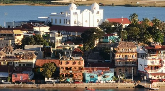 Depuis trois jours que nous côtoyons le lac de Peten Itza, nous finissons par nous y attacher. Du coup non seulement nous adoptons son rythme paisible mais nous décidons d’aller voir ce qui se passe sur la rive opposée. Après un petit déjeuner tardif en mode dimanche, nous bouclons les sacs pour un transfert en douceur vers l’île de Flores. Le tuktuk nous prend sur le pas de la porte, les sacs le quittent pour sauter directement dans le collectivo pour Santa Helena et en ressortent pour rentrer dans un nouveau tuktuk pour Flores. En moins d’une heure le décor change. Nous voilà à barboter dans la piscine de l’hôtel avant d’entreprendre un mini tour de l’île et de se poser pour déjeuner. Avec un rythme pareil une sieste face au lac s’impose. Allez ! on se motive pour traverser la route du malecon et prendre un bateau. Nous avons une lancha adaptée à la journée qui lentement mais sûrement nous dépose à 3 kilomètres sur la rive opposée pour aller rencontrer le jaguar du zoo de l’association ARCAS. Il s’agit d’un dispensaire pour animaux abandonnés (tels que des perroquets), les orphelins, les blessés par braconnage et les saisies des douanes. Leur travail consiste à les soigner et à les réintroduire dans la nature. En revanche ceux qui sont trop mal en point ou qui sont restés en contact d’humains trop longtemps ne réussissent pas le test pour regagner leur liberté. Ce sont ceux-là que nous avons rencontrés. L’occasion de faire un don pour l’association et une petite balade dans la jungle. Les perroquets et les singes font pitié mais voilà trop tard pour eux… Les hommes les ont pervertis. Notre petit monsieur de la lancha est content, nous décidons de poursuivre notre navigation jusqu’au mirador. Là nous avons fourni le seul effort de la journée histoire de mériter la piña colada de l’apéro. La nature qui borde la majeure partie du lac est juste exceptionnelle. Il semblerait que nous soyons sur un site Maya mais nous n’avons rien vu. Petit dîner sympa pour moi, Martine est en grève elle se contentera de l’apéro. Une petite balade digestive pour moi et une tout court pour elle histoire de voir où sont passés tous les touristes que l’on nous avait annoncés sur Flores. Mais en fait nous rencontrerons principalement des locaux juste sortis de la messe et installés pour écouter deux gars jour de la marimba (xylophone dont l’interprète peut utiliser jusqu’à 2 ou 3 baguettes dans chaque main). C’est l’instrument de musique national. Sur la place les costumes de défilé de la feria de janvier sont de sortie. Chaque année pour la feria, les familles défilent en dansant derrière un des membres qui porte son costume qui peut être visiblement un personnage ou un animal. Le tout au rythme des joueurs de marimba. Voilà encore une belle journée d’écoulée mais demain c’est sûr nous quittons le Peten. On monte en gamme dans nos hébergements et en plus nous avons été surclassées avec la chambre et le balcon offrant la plus belle vue de l’hôtel. Moi je dis que tout va bien.
