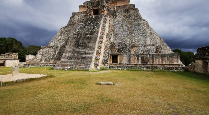 La pluie accompagne notre transfert jusqu’à Uxmal, le site le plus remarquable de par sa conservation. Je vous laisse consulter Wikipedia pour vous amuser à retrouver le jeu de balle, le palais du gouverneur, la maison du devin à la forme ovale inhabituelle, la grande pyramide… ce site est somptueux les photos ne permettent pas de vous partager cette sensation de découverte que la conception du site nous permet de ressentir. Derrière chaque pierre et chaque recoin une surprise archéologique vous attend. Quel savoir-faire, c’est extraordinaire. Il est 14h, les autocaristes ont dû déposer les groupes au déjeuner et cela nous permet de saisir la quiétude de l’endroit.