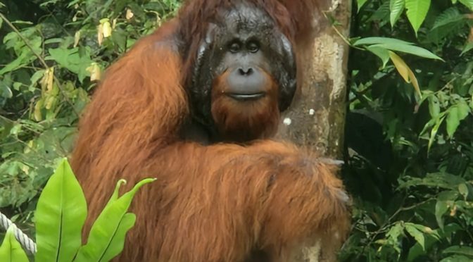 8h, nous rencontrons Nic, un jeune malais passionné par les orangs outans avec qui nous allons passer nos derniers jours à Bornéo. Pour aujourd’hui nous nous sommes contentées d’une visite à Semenggoh, une autre réserve d’orangs outans semi sauvages. Quarante minutes de voiture depuis Kuching suffisent pour atteindre le centre. A notre arrivée, nous sommes déçues de constater que tous les chemins de randonnée sont fermés. Suite à une attaque des singes il n’est plus possible de circuler même en compagnie d’un ranger. Bon et bien nous allons tout de même apprécier la venue d’Edwin, 28 ans, venu chercher quelques bananes. Ce jeune mâle imposant est en passe de devenir le leader du clan mais pour le moment il n’a pas encore vaincu Ritchie le mâle dominant. De ce fait sa présence sur les lieux invalide la possibilité de voir les mères et leurs petits et encore moins Ritchie de 42 ans. Vous remarquerez sur les photos qu’il se tient toujours à une liane ou corde, c’est pour être toujours prêt à fuir ou attaquer. Nous retournons sur Kuching où j’ai eu la bonne idée de changer d’hôtel pour avoir un balcon mais en fait balcon signifie ici grande fenêtre avec vue ! Martine se moque bien de moi et du coup nous avons perdu nos repères de notre sympathique quartier chinois. Nous voilà au bord de la rivière à la recherche d’un lieu pour déjeuner mais ici tout ne s’anime qu’à partir de 18h. J’ai une envie de rôti boom indien alors nous cherchons la rue indienne notée sur le plan. On passe et on repasse par la rue chinoise avant de s’apercevoir que la rue indienne ne contient en fait que des boutiques. OK trop faim, nous repartons chez les chinois et nous stoppons à la première terrasse et surprise en lisant la carte nous sommes dans un restaurant indien ! Super je peux me régaler. Retour au nouvel hôtel où une super piscine me fait avaler le manque de balcon et dont la terrasse attenante perchée au quatrième étage sert des cocktails et tient lieu de zone fumeur. Ok la vie est belle. Ce soir un petit restaurant tranquille et au lit de bonne heure car demain c’est le grand départ pour 6 jours au bout du monde ! Il nous reste également à acheter un peu plus d’anti moustiques et notre sac bout de brousse sera prêt. Lampe frontale, chaussettes anti sangsues, gourde, chaussures de randonnée, chaussures d’eau, maillot de bain si pas de sangsues dans les cascades, casquette et en route. Départ demain matin pour un voyage de 8h partagé entre la voiture et une barque à moteur. Au programme randonnées à la recherche d’orangs outans sauvages le matin et après-midi et découverte de la jungle la nuit pour 3 jours puis rencontre d’une tribu Iban ancien coupeurs de tête après une autre expédition en barque. Alors pour internet nous attendrons de revenir dans la vie moderne.
